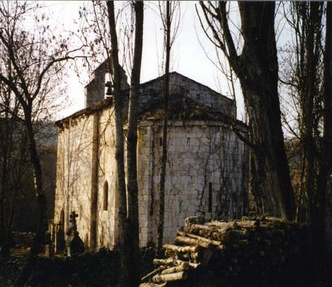 L’église de Saint-Sernin du Bosc est absolument isolée et presque oubliée dans un vallon agreste, d’accès difficile, appelé poétiquement « Combe du Miel ». Devenue église paroissiale après la Révolution, elle est située sur la commune de Lauzerte. Elle relevait sous l’Ancien Régime du diocèse de Cahors et faisait partie des nombreuses possessions de l’abbaye de Moissac, dont elle dépendit jusqu’au XIIIe s. Elle fut ensuite cédée par les abbés de Moissac à l’évêque de Cahors. Elle est située sur l’un des nombreux chemins de Saint-Jacques de Compostelle. C’est un édifice roman de proportions très modestes (longueur totale de 20 mètres), bâti en pierre de moyen appareil. L’abside semi-circulaire est voûtée en cul-de-four, elle est précédée d’une travée de chœur plus large, couverte d’un berceau brisé. Les ouvertures sont peu nombreuses, l’abside est aveugle, le chœur en possédait deux, celle du nord est masquée par l’actuelle sacristie, la nef en avait deux également , fort étroites, elles ont été remplacées au sud par une ouverture trilobée. L’entrée principale au sud s’ouvre par une baie en tiers-point. La porte occidentale en plein cintre, de proportions modestes, a été longtemps murée et dissimulée par un porche rustique pour constituer un abri. Un clocher-mur à pignon triangulaire surmonte la façade. A l’extérieur, le chevet, très harmonieux, a conservé une partie de sa cor niche primitive, soutenue par des modillons sculptés ornés de boules, de masques, d’animaux, etc. L’architecte en chef des Monuments historiques, dans l’avis favorable à la protection donné en 1979, jugeait l ‘édifice très représentatif du Quercy blanc. La commune de Lauzerte compte 1 529 habitants, mais ossède sur son territoire plusieurs églises-chapelles isolées. Une association locale de sauvegarde est née pour sauver l’édifice. Les travaux de gros œuvre, après étaiement et couverture provisoire, portaient sur la réfection des maçonneries, la couverture définitive du chœur, la réfection des ouvert ures. Les travaux s’échelonneront sur plusieurs années. La Sauvegarde de l’Art Français a accordé une aide de 40 000 F en 1994.