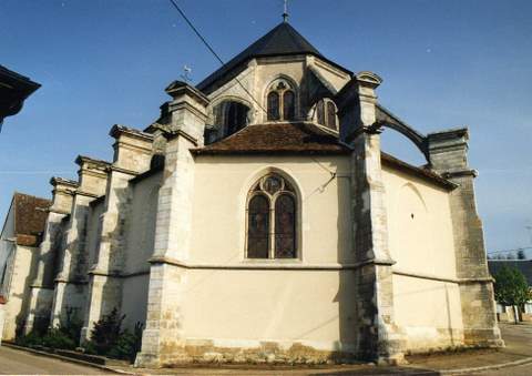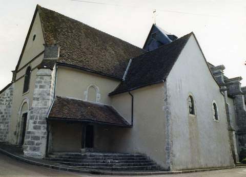 L’église Saint-Germain a été reconstruire à la fin du XVIème s. et dans les premières années du XVIIème s. sur des bases romanes encore visibles dans les maçonneries des murs nord et sud de la nef. Un incendie avait en effet détruit l’église et le village en 1591. Une part importante de la construction du chœur est due à Henri de Bourbon, duc de Montpensier (1573-1608). Le clocher fut détruit par la foudre en 1891 et ne fut jamais reconstruit. Le mur-pignon ouest a été modifié au XIXème siècle. La silhouette de l’église présente une rupture très marquée entre le chœur, très élancé, voûté sur croisées d’ogives et couvert d’ardoises, et la nef beaucoup plus basse, lambrissée et couverte de petites tuiles. La lecture du plan traduit bien ce contraste : la nef unique et large sur laquelle s’ouvrent deux chapelles latérales et un chœur développé de plusieurs travées avec un déambulatoire. A l’extérieur, le chevet est rythmé par de grands contreforts et arcs-boutants en calcaire blanc qui enjambent la toiture du déambulatoire et accentuent l’effet de verticalité. Ces contreforts sont sommés d’un décor de style toscan avec de petits frontons en alternance triangulaires et cintrés, soigneusement moulurés. A côté de cette référence antique, les gargouilles perpétuent l’esprit médiéval. A l’intérieur, la nef très courte communique avec les deux chapelles latérales par de grandes arcades de plein-cintre. Elle est couverte d’une carène renversée dont une partie est plâtrée tandis que l’autre conserve sa charpente apparente. Les deux chapelles latérales sont couvertes de plafonds enduits de plâtre. Elles sont ornées chacune d’un retable du XVIIème s. en pierre, avec entablement à frise et fronton interrompu à volutes. A droite du retable nord, subsiste un fragment de peinture murale du XVIIème s., un bouquet de fleurs dans un vase posé sur un socle. Une pierre de réemploi dans le mur de la chapelle sud présente l’écusson de la maison de Bar : deux bars adossés. Elle rappelle que cette famille a possédé la terre de Lavau de 1255 à 1430. Un arc en tiers-point élégant, haut de 15 mètres, marque l’entrée du chœur. Une remarquable chaire à prêcher en pierre sculptée, datée de 1683, est adossée au pied de cet arc, côté nord. Le chœur offre un mélange de style gothique et Renaissance. Composé de deux travées droites s’achevant par une abside polygonale, il ouvre sur le déambulatoire par une série de grandes arcades. La travée Est qui abrite le sanctuaire est couverte d’ une belle voûte avec six ogives qui partent d’une clef centrale et qui retombent sur des pilastres plats. Le profil des grands arcs du chœur est en cintre brisé légèrement surhaussé. Les neuf baies logées au niveau supérieur, sous les arcs formerets ont un remplage Renaissance dans une ouverture en tiers-point. Les nervures des voûtes du déambulatoire retombent en pénétration sur des colonnes engagées. La Sauvegarde de l’Art Français a accordé une aide de 35 000 F en 1995 pour la restauration des couvertures, charpentes et maçonneries hautes de la nef de l’église.