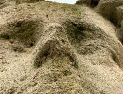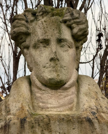 Le buste est exposé en plein air au quotidien, ce qui implique qu’il subit les effets normaux du vieillissement et des intempéries pour une sculpture extérieure.