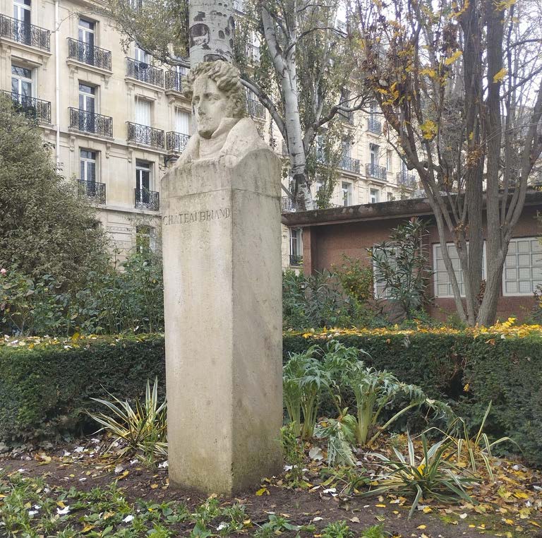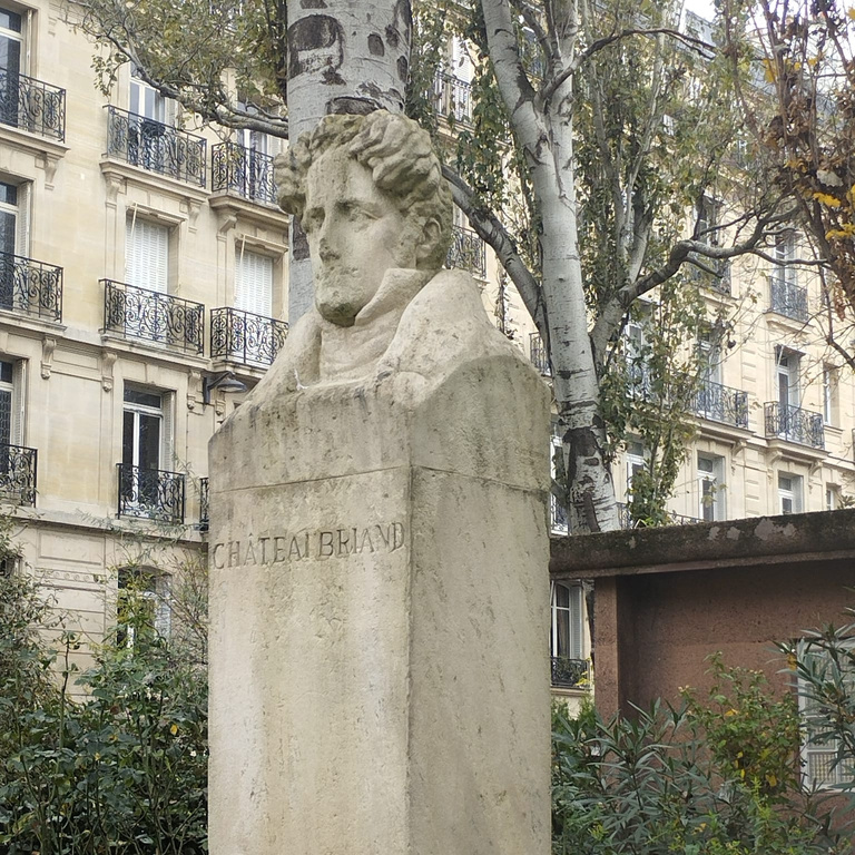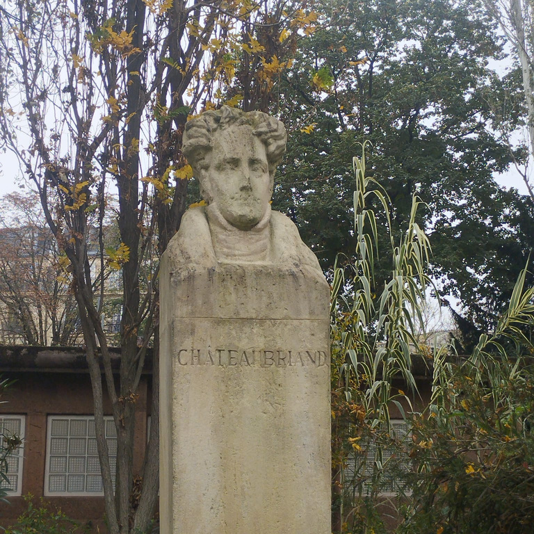 Le buste de François-René de Chateaubriand est situé dans le 7ème arrondissement de Paris, dans le Square des Missions-Etrangères.