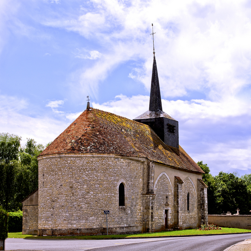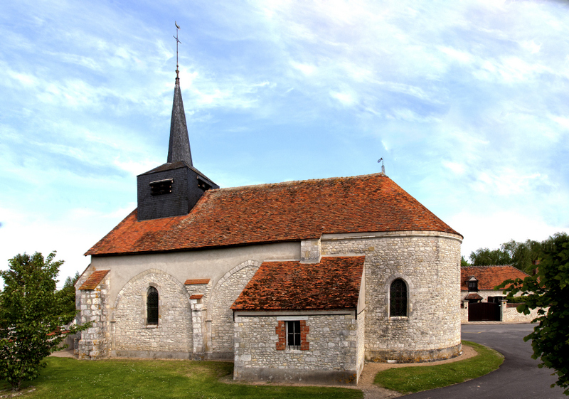 Fondée vers la fin du XIIe s., l’église est modifiée à plusieurs reprises. A l’origine, elle se compose d’une simple nef voûtée en berceau et terminée par un chevet plat ou, plus vraisemblablement, une abside. En subsiste la façade occidentale, épaulée par deux gros contreforts et dont le soubassement est délimité par un bandeau en saillie à motifs en « dents de scie ». Ces motifs se répètent sur le portail en arc brisé dont l’archivolte à boudin retombe sur deux colonnettes aux chapiteaux ornés de feuilles s’enroulant en volutes. De cet état primitif, témoignent encore, dans la nef, les colonnes engagées prévues pour recevoir les extrémités des arcs doubleaux de la voûte ; leurs chapiteaux sont décorés, selon les cas, de feuillages, de figures, ou d’animaux fantastiques. Rien ne prouve cependant que la nef ait été réellement couverte, à l’origine, d’une voûte en berceau, car seule une voûte lambrissée, laissant apparaître les entraits et les poinçons de la charpente, est mentionnée dans les descriptions que l’on possède pour le XIXe siècle.