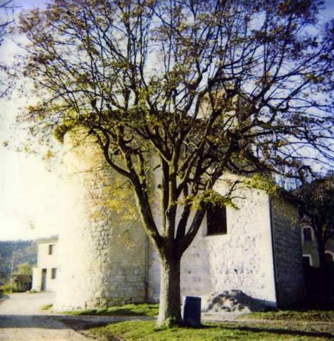 Les Guerres de Religion au XVIe s., qui ruinèrent la plupart des édifices religieux du diocèse de Die, one sans doute amené la destruction totale de l’église de Lesches-en-Diois puisque l’ édifice actuel a été construit en 1650. Il présence un caractère homogène intéressant dans sa simplicité. Son plan comporte une nef unique de deux travées prolongée par une abside semi-circulaire de même largeur. La façade occidentale est précédée d’un clocher-porche composé au-dessus du rez-de-chaussée de trois étages inégaux soulignés par des corniches. La porte d’entrée est de style classique ; son arc en plein centre retombe directement sur les pieds-droits. Le premier étage est percé d’un oculus. A l’ étage supérieur , chaque face com porte une ouverture en plein cintre. Le tout est à quatre pans. L’église a toujours été entretenue. La toiture, à l’exception du clocher, a été entièrement rénovée dans la dernière décennie. La commune de 49 habitants (100 pendant l’été) a prévu la remise en état du clocher, toiture et enduits. Sur le devis initial l’Agence des Bâtiments de France a demandé des modifications qui alourdissent les dépenses : remplacement des bardeaux bitumineux prévus par des tuiles écailles vernissées ; enduits à la chaux naturelle. La Sauvegarde de l’Art Français a participé à ces travaux pour 24 000 F en 1994 .