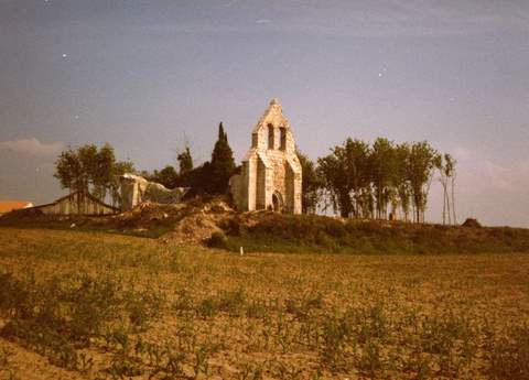 L’ancienne église paroissiale Sainte-Croix construite au xiiie s. selon un plan très simple comporte une nef rectangulaire prolongée par un chœur en hémicycle de même largeur. La façade occidentale consolidée par quatre contreforts, deux à l’ouest, un au nord, un autre au sud, supporte un clocher pignon ouvert de deux larges baies. Le portail dans la partie inférieure est orné de deux tores séparés par une scotie, qui prolongent dans les voussures les colonnettes des piédroits. L’ensemble de la façade constitue à lui seul un beau et solide morceau d’architecture. La nef et le chœur à l’état de ruines pourront être consolidés comme tels.