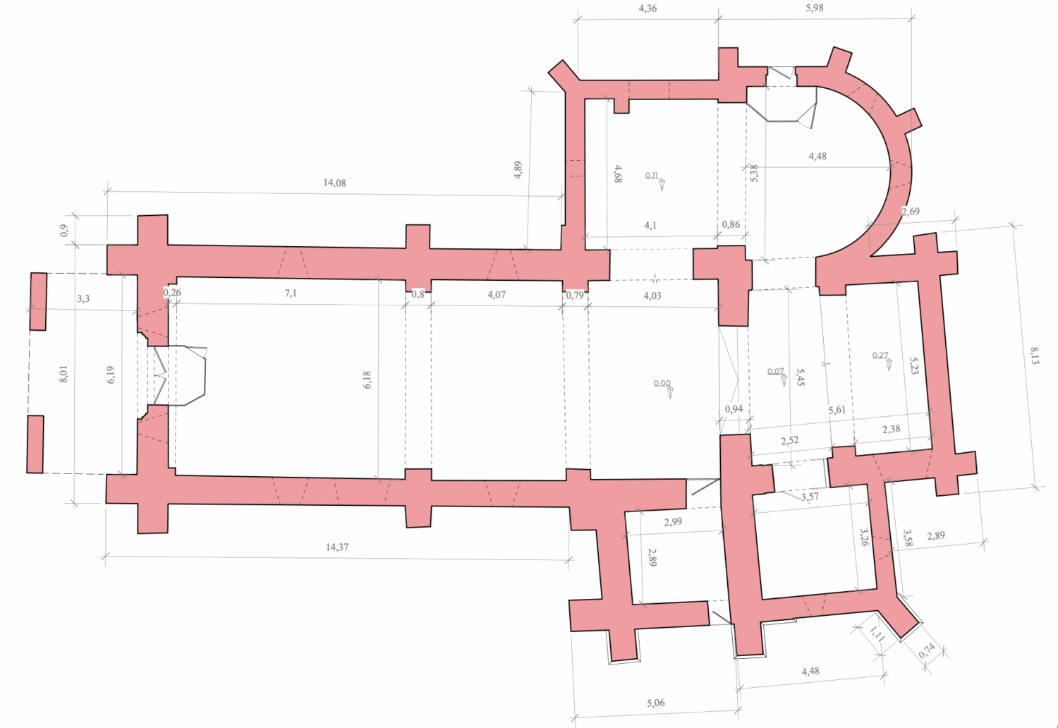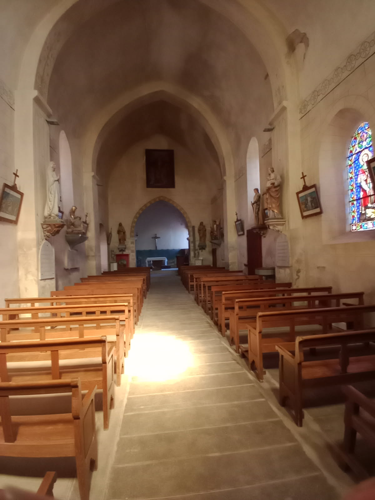 Celle-ci date de la seconde moitié du XIIe siècle et comprend une nef de trois travées inégales avec un sanctuaire carré et un chevet plat. Le chœur est flanqué, à gauche, d’un clocher roman et d’une petite chapelle du XVe siècle, voûtée en ogive, transformée aujourd’hui en sacristie, celle-ci même tenue à droite d’une vaste chapelle édifiée vers 1868, pour les châtelains de la Forêt.