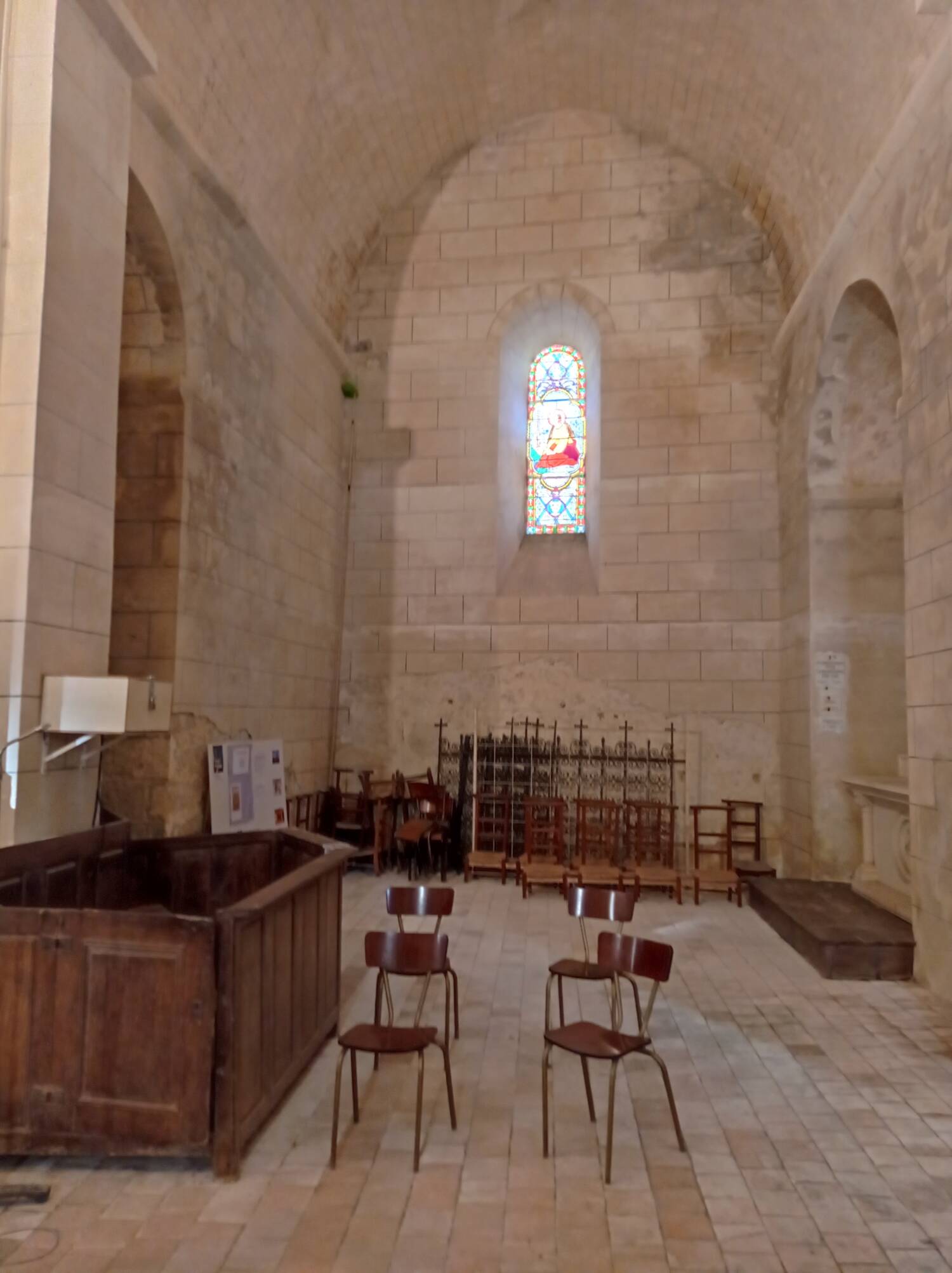 Le chapiteau roman de la croisée du transept, situé au nord, côté nef, illustre un symbolisme religieux fort avec des serpents entrelacés et un poisson parlant à une tête humaine, rappelant la lutte entre le Bien et le Mal.