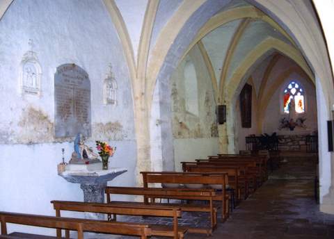 À l’intérieur, la nef et son unique bas-côté, au sud, sont couverts de voûtes sur croisées d’ogives dont les moulurations saillantes et effilées sont caractéristiques du XVe siècle.