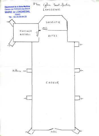 Entourée de son cimetière, l’église Saint-Martin est un modeste édifice bâti de 1754 à 1756. Mais le robuste clocher situé à gauche du chœur est sans doute plus ancien. Son appareil, différent de celui de l’église, bien qu’il utilise le même grès local, et ses étroites ouvertures, presque des meurtrières, sont en faveur d’une datation plus ancienne sans qu’il soit possible d’être plus précis. L’édifice se compose d’une nef unique et d’un chœur à trois pans, l’ensemble couvert par un lambris. Bien que dépouillé de presque tous les éléments de son décor pendant la Révolution, il possède encore un beau confessionnal, des fonts baptismaux et les bancs des fidèles remontant au XVIIIème s. Pour la mise hors d’eau du clocher et du versant sud du toit de l’église la participation de la Sauvegarde de l’Art Français s’est élevée à 30 000 F en 1991.