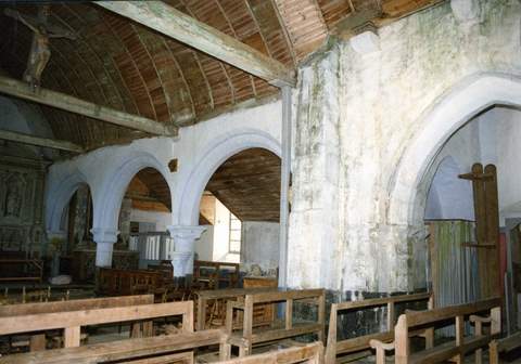 L’église Saint-Brice de Loucé dépendait autrefois de l’abbaye Saint-Jean de Falaise. L’édifice se présente comme un vaisseau rectangulaire sur lequel se greffent au sud un clocher, un bas-côté et une chapelle. L’église romane primitive comprenait un vaisseau unique de 25,60 m sur 7,70 m. De cet édifice subsistent les murs ouest, nord et est. La façade ouest est ajourée en hauteur de deux baies romanes étroites et allongées en plein cintre. Le portail, à trois voussures retombant sur des chapiteaux à crochets portés par des colonnettes, date du XIIIème s. Le mur nord a conservé une petite fenêtre romane ainsi que la trace de trois autres baies identiques. Une fenêtre trilobée a été réalisée au XIIIème s. La moitié est de ce mur a été défigurée par le percement de trois grandes ouvertures rectangulaires aux XVIIIème et XIXème s. Le chevet plat présente une grande baie à remplages qui semble dater du XVIème s. Le vaisseau est couvert d’un berceau lambrissé en plein cintre. Le clocher carré accolé au mur sud de l’édifice date du XIIIème s. Son étage supérieur a été réalisé au début de l’époque moderne. Il est surmonté d’une flèche à huit pans couverte d’ardoises. Au XVIème s., un second vaisseau est édifié à l’est du clocher. Le mur sud de la nef fait place à un mur diaphragme ouvert de trois grandes arcades en plein cintre reposant sur des chapiteaux massifs portés par des colonnes ou des demi-colonnes engagées. Le rez-de-chaussée du clocher est alors percé de deux larges arcades, l’une ouvrant sur la nef, au nord, et l’autre sur le bas-côté. L’obturation partielle de cette dernière ouverture et les traces d’un solin visibles sur la face est du clocher indiquent que le second vaisseau devait être de même largeur que la nef primitive et couvert d’une toiture à deux pans. Le bas-côté actuel, qui porte une toiture en appentis prolongeant le versant sud de la toiture de la nef, est moitié moins large ; il est éclairé par deux lucarnes qui ne semblent pas antérieures au XVIIIème s. Les récents travaux de restauration ont révélé qu’il était couvert d’un demi-berceau lambrissé. La chapelle rectangulaire à l’est du bas-côté est couverte d’une toiture à deux pans perpendiculaire à la nef. Elle est éclairée par une grande fenêtre rectangulaire attribuable, comme les trois grandes baies rectangulaires du mur nord, au XVIIIème ou XIXème s. L’intérieur de l’église est intéressant à plus d’un titre. Des éléments de fresques des XIIIème et XIVème s. sont visibles sur les murs nord, ouest et sud. L’édifice possède un mobilier de qualité. Le retable du maître-autel date de 1730. Il occupe toute la largeur du mur de chevet. Quarre colonnes, portant un entablement et un fronton triangulaire interrompu, divisent le retable en trois parties. Au centre, un tableau représente une descente de croix. Deux niches, disposées de part et d’autre, encadrées de panneaux de faux marbre, accueillent une statue en bois de saint Brice et une autre de saint Jean-Baptiste. Un autel Louis XIII dédié à ce même saint patron de l’abbaye falgasienne, est visible dans le bas-côté. On trouve dans la chapelle latérale un autre autel du XVII’ s. On peut encore signaler une chaire Louis XIII, une statue en pierre de sainte Agathe, et un lutrin de facture rustique. L’église, inscrite à l’inventaire supplémentaire des Monuments historiques, était dans un état de conservation inquiétant.