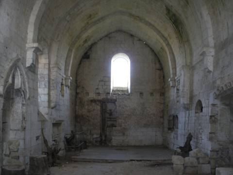 La chapelle, du XIIIe s., construite dans un très bel appareil régulier de tuffeau présente un vaisseau unique, principalement percé au nord et épaulé de contreforts régulièrement appareillés dont les glacis s’élèvent jusqu’au niveau de la corniche. L’édifice attire l’attention par l’homogénéité de sa construction. La façade occidentale est percée d’une porte à profil brisé dont les moulures retombent sur des chapiteaux et des piédroits malheureusement dégradés. À l’intérieur, la voûte est soigneusement appareillée : son profil brisé accentué confère une grande noblesse et élégance au volume, les larges doubleaux retombant sur des culots puissamment moulurés. La fenêtre d’axe, celle qui domine la porte occidentale et celles du côté nord, de profil cintré, correspondent très vraisemblablement à l’époque la plus ancienne de construction parvenue à nous, le voûtement ayant dû être réalisé par la suite. Deux niches ouvrent sur le mur nord ; la première est décorée d’un trèfle trilobé sous accolade qui abritait peut-être un lavabo ; un peu plus loin, un enfeu renferme encore un gisant saisissant du XVe s., au-dessus duquel figure une longue inscription latine relevée par Alphonse Le Touzé de Longuemar (1803-1881). Un enfeu de plus grandes dimensions a été aménagé dans le mur sud ; son pourtour est orné d’une élégante frise, mais la niche est désormais vide. Plus loin, une armoire eucharistique a peut-être conservé son huisserie d’origine.