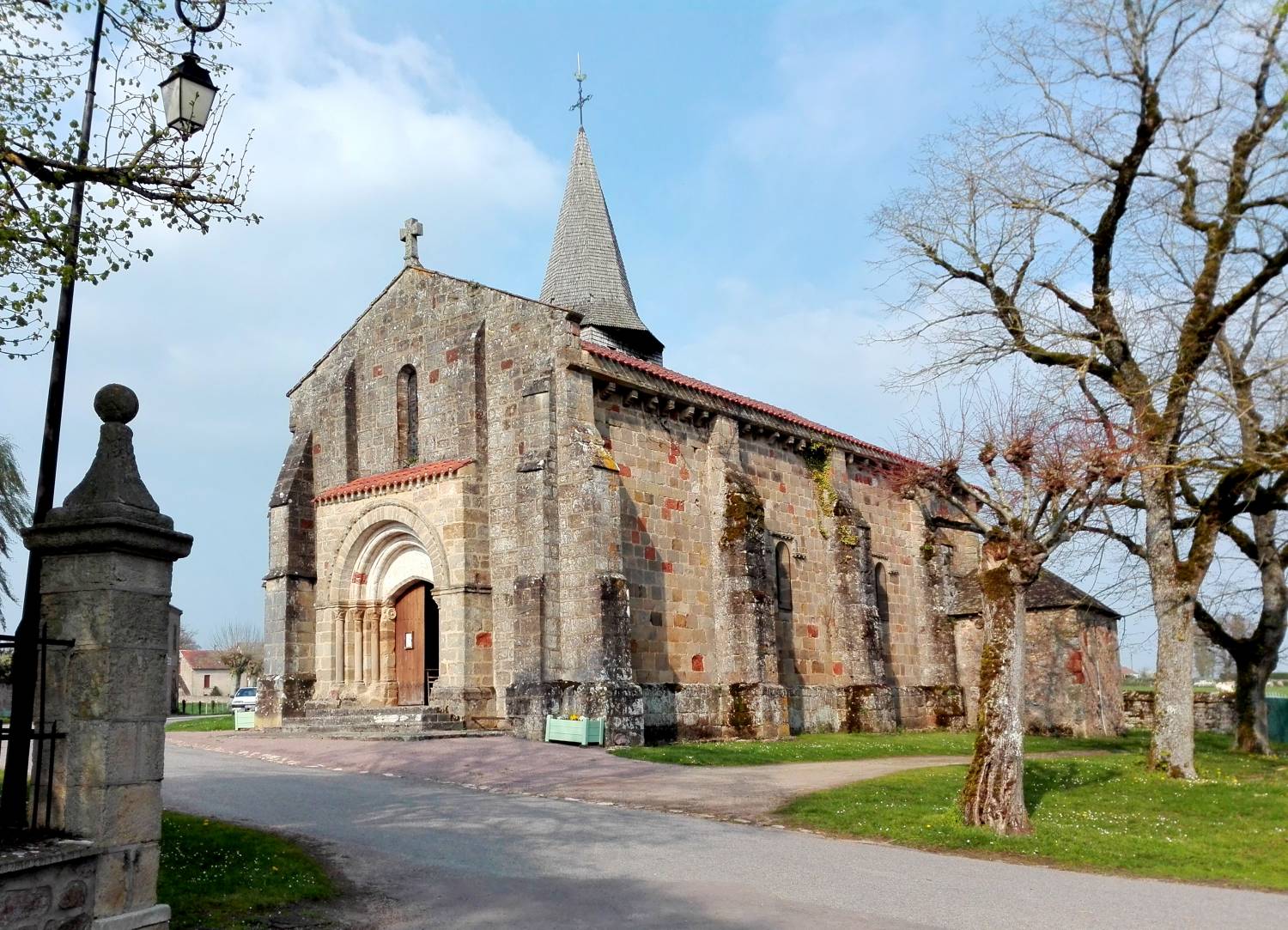 L’église présente un porche saillant avec trois archivoltes sur colonnettes.
