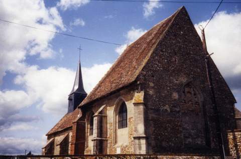 Mentionnée en 1159 comme possession du chapitre de Chartres, l’église Saint-Léger doit remonter dans ses parties les plus anciennes, nef et façade occidentale, au XIème s. La nef de 15 m de long sur 7 m de large est construire en petits moellons noyés dans du mortier. Seuls, un chaînage d’angle de la façade et l’arc en plein cintre de la porte d’entrée sont en pierres appareillées. En 1514, un chœur plus vaste (10 m X 10 m) terminé par un mur plat, a été ajouté à l’est. Certaines de ses baies en arc brisé ont conservé leurs beaux remplages. L’ensemble chœur, nef, est couvert par une belle charpente en forme de carène renversée. Un important décor, réalisé au XVIIIème s., boiseries, stalles, banc d’œuvre, arc de gloire, lutrin, balustrade de communion a été heureusement conservé. Des traces de peintures murales médiévales et une litre armoriée ont été repérées sur les murs ainsi que des graffitis anciens à l’extérieur. Des fonts baptismaux en pierre du XIIème s. et une statue de saint Léger en pierre du XVème s., sont classés Monuments historiques. Un clocher en ardoise surmonté d’une flèche aussi en ardoise, s’élève au-dessus du pignon de la façade occidentale, légèrement en retrait. La Sauvegarde de l’Art Français a accordé une aide de 100 000 F en 1992 puis de 40 000 F en 1993 pour des travaux indispensables sur la charpente et la couverture.