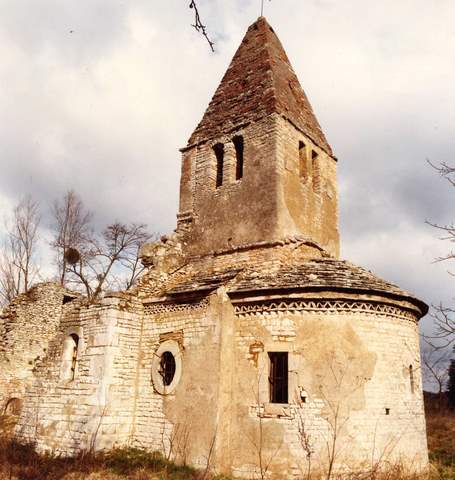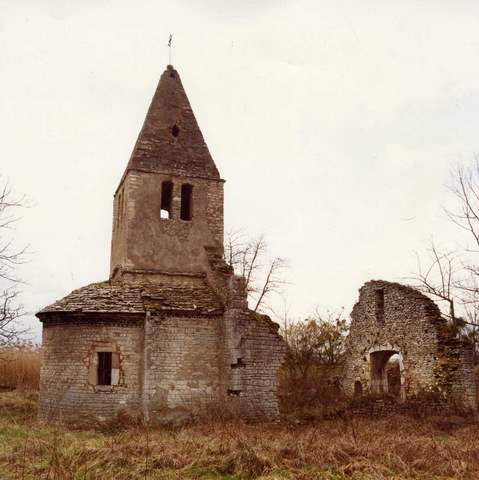 L’église, sous le patronage du chapitre de Saint-Vincent de Chalon-surSaône, est actuellement désaffectée. La nef, en ruine, précède la courte travée droite du chœur qui supporte un clocher à fenêtres géminées, surmonté d’une flèche de pierre. L’abside en hémicycle a conservé sa voûte en cul-de-four et sa couverture de laves.