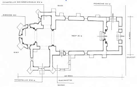 Par ses dimensions modestes, son plan simple, une nef non voûtée de pierre, suivie d’une travée droite portant le clocher, et un chœur voûté, par la nature et l’emploi des matériaux, l’appareil de tuffeau et les joints assez épais, l’église de Marcé présente nombre de points communs avec celles dont l’abbaye de Noyers a dû diriger la reconstruction partielle ou totale.
