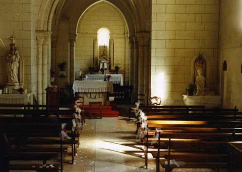 Des modifications ont été apportées par la suite. Ainsi, pour supporter le clocher, la travée droite à l’entrée du chœur a été voûtée sur croisée d’ogives ; de même, l’hémicycle du chevet, circulaire à l’extérieur, a été aménagé sur un plan quadrangulaire à l’intérieur, pour supporter plus logiquement les ogives de la voûte gothique qui remplace le cul-de-four habituel. Les ogives à méplat entre deux tores sont typiques du premier art gothique dit Plantagenêt ; en revanche, celles de la travée droite sous le clocher sont plus élégantes et plus légères, simples boudins entre deux cavets prouvant un travail plus tardif, sans doute du XIIIe siècle. Cependant, les colonnes engagées, chapiteaux et tailloirs, paraissent du même modèle dans ces deux parties ; les chapiteaux sont ornés de larges feuilles stylisées dont les pointes s’enroulent dans les angles supérieurs, d’autres portent des masques humains, sujet fréquent dans le Poitou voisin.