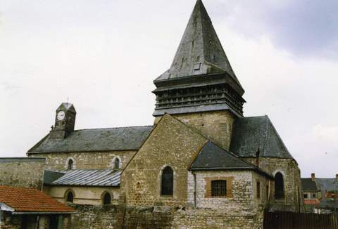 L’édifice actuel est marqué par les agrandissements successifs de l’église primitive à laquelle on peut attribuer le vaisseau central de la nef, à l’origine vaisseau unique, et dans son prolongement, les parties maçonnées du clocher particulièrement massif. Ces éléments pourraient remonter au XIIème siècle. Ultérieurement furent ajourés des bas-côtés à la nef, ce qui entraîna le percement de grandes arcades dans les murs gouttereaux de l’église primitive. Les bras du transept ne semblent pas antérieurs au XVème siècle. Il en va peut-être de même pour le chœur avec son abside à cinq pans. Le couronnement du clocher, avec la flèche d’ardoises soulignée à la base par des sortes de hourds, remonte sans douce au XIXème siècle. C’est à cette époque qu’ont été aménagés les porches latéraux de la nef.