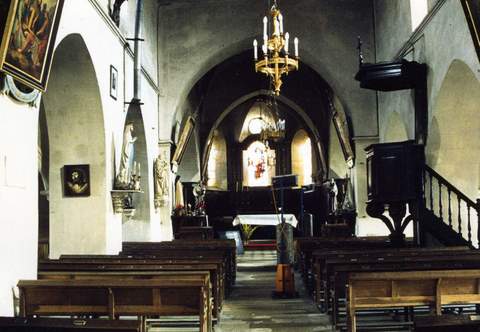 L’église conserve un riche mobilier, des fonts baptismaux en pierre du XIIème s., la dalle gravée de Florentin Hubert et de sa famille (XVIIème s.), une peinture sur toile représentant la Descente de Croix ( XVIème s.), tous trois classés (20 décembre 1911), et l’autel et les boiseries du chœur du XVIIIème s. inscrites (22 juin 1973). Les travaux ont porté sur la charpente et la toiture refaite entièrement en ardoises d’Angers épaisses posées aux clous cuivrés. Les éléments métalliques sont également réalisés en cuivre. Pour ces travaux de réfection d’une grande qualité d’exécution , la Sauvegarde de l’Art Français a accordé une subvention de 100 000 F en 1995 .