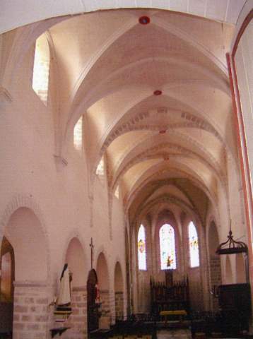 La nef, malgré l’aspect trompeur de fausses voûtes gothiques ajoutées au XIXe s. par souci d’harmonisation avec les voûtes anciennes du chœur, est dans son gros œuvre essentiellement romane ; comme ses bas-côtés, elle était à l’origine couverte de charpente. La disposition la plus remarquable et qui souligne l’ancienneté de cette construction consiste dans l’ensemble des cinq arcades basses qui séparent nef et bas-côtés. Ces arcades sont ouvertes dans des murs gouttereaux très épais, elles sont en plein cintre et certaines légèrement outrepassées. Elles sont soulignées au sommet des piles rectangulaires qui leur servent de support par des tailloirs simples limités à l’intrados de l’arc et décorés d’un simple rectangle, motif traditionnellement appelé le cartouche carolingien.
