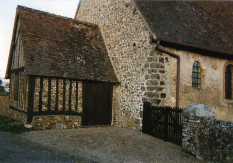 Charmante petite église du pays d’Ouche, l’église de Marnefer, dédiée à saint Laurent, date en grande partie du XVIe siècle. De petites dimensions, elle se compose d’ouest en est d’une nef unique de quatre travées à laquelle on accède par un porche à colombages, d’un chœur plus étroit et plus court à chevet droit, et d’une sacristie à pans coupés remaniée au XIXe siècle. De cette époque peuvent être datées d’autres interventions, comme l’ouverture de plus grandes baies dans les murs gouttereaux de la nef. Dominant la façade occidentale se dresse un clocher d’ ardoises originellement couvert de bardeaux de bois. Le reste de l’édifice, à l’exception de la sacristie, est couvert de tuiles plates. À l’intérieur, l’église a conservé beaucoup de son charme grâce à la présence de nombreux éléments de son décor d’origine. La nef est couverte d’une élégante voûte lambrissée au profil brisé dont le décor au pochoir et la mouluration des entraits révèlent une campagne de travaux soignée au XVIe siècle. Cette voûte contraste d’ailleurs avec celle du chœur, au profil plus plat et dont les douvains sont moins soigneusement ajustés. Toutefois ce dernier ensemble porte des traces de polychromie et d’un décor peint au dessus du maître-autel. Séparant la nef du chœur, le grand arc diaphragme au profil brisé rappelle lui aussi par le profil de ses moulurations l’intervention majeure du XVIe s. dans la construction de l’édifice. Autels latéraux, lambris du chœur, maître-autel – dont le tableau central figurant une Résurrection est encadré de chaque côté d’une colonne à chapiteau corinthien et d’une porte d’accès à la sacristie arrière – résultent d’une campagne importante du XVIIIe s. dans le renouvellement du décor intérieur. Pour la restauration du pignon ouest malencontreusement rejointoyé au ciment lors de travaux antérieurs, pour celle de la couver ture de la nef et du chœur, pour la reprise de la charpente et de la couverture du clocher avec restitution de sa structure primitive et notamment des bardeaux de châtaignier, la Sauvegarde de l’Art français a accordé une subvention de 100 000 F en 1999.