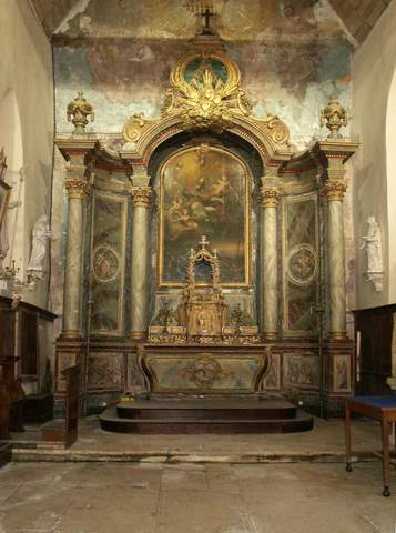 Le bénitier est placé sur un tabernacle gothique. Haut d’un mètre environ et très sculpté, dans le style du XVe s., le bénitier aurait été apporté de l’abbaye du Val . Il sert de réserve eucharistique.