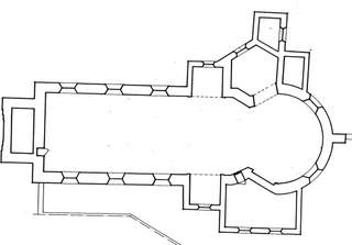 Des ouvertures régulières en arc brisé éclairent largement l’espace intérieur couvert d’une fausse voûte plate qui semble reposer sur une vigoureuse corniche. La parfaite lisibilité extérieure de l’édifice est confirmée par le plan : nef unique ouverte sur deux petites chapelles latérales et prolongée par un chœur arrondi qui se développe élégamment à l’arrière d’une entrée de chœur resserrée. Au nord, la chapelle seigneuriale est accessible de l’extérieur par un vestibule et s’ouvre sur le chœur, mais ses occupants restent invisibles de la nef grâce à cette entrée de chœur resserrée. Au sud, la sacristie communiquait avec le jardin du presbytère.