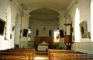 D’une grande sobriété, les vitraux remplacés à la fin du XIXes. ont, fort heureusement, respecté la clarté voulue de l’édifice. Le mobilier est simple et homogène mais les murs sont ornés de tableaux dont quatre ont été inscrits à l’Inventaire supplémentaire des Monuments historiques ; l’un d’eux est un témoignage émouvant de la carrière de peintre – courte et peu connue – de Théophile Gauthier. Une villégiature d’été dans le village explique la présence de ce tableau de 1829 qui représente un épisode de la vie du saint patron du lieu : « Saint Pierre guérissant un paralytique ».