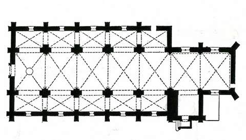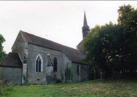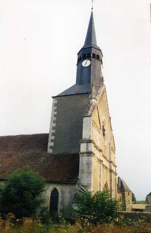 L’église paroissiale, placée sous le vocable de saint Siméon, est située à proximité immédiate du château de Menou et son histoire est intimement liée à celle de ses propriétaires, les familles Menou et Damas-Cruz. La chapelle seigneuriale leur a servi de sépulture. L’église a été édifiée au XIIIème s. sur le territoire de l’ancien fief de Nanvignes, nom de Menou jusqu’en 1697, qui fut alors érigé en marquisat. C’est un édifice assez vaste de plan rectangulaire, composé d’une nef de cinq travées bordée de collatéraux, ajourés à la fin du XVIIIème ou au début du XIXème s. et d’un chœur à chevet plat de deux travées. La chapelle seigneuriale s’ouvre au sud sur la première travée du chœur. La nef est voûtée sur croisées d’ogives. Celles-ci retombent sur des colonnes dorées de chapiteaux à forts tailloirs ornés de crochets variés, caractéristiques du XIIIème siècle. Les clés de voûtes sont garnies de feuillages. Les grandes arcades en plein cintre de la nef retombent sur les colonnes engagées. Les collatéraux sont voûtés d’arêtes. La nef est éclairée par les fenêtres des bas-côtés. Celles-ci sont soit en tiers-point, soit en plein-cintre. Le chœur à chevet plat était primitivement éclairé par deux fenêtres, aujourd’hui cachées par un retable du XVIIIème siècle. Sur son flanc sud s’ouvrent deux baies dont l’une, en arc brisé, est garnie d’un réseau gothique. Les chapiteaux du chœur, différents de ceux de la nef, présentent un décor de feuillages. La chapelle seigneuriale du XVIème s. communique avec le chœur par un arc en plein cintre ; elle est voûtée sur croisées d’ogives à fort relief. Les châtelains pouvaient y accéder directement par une porte, précédée d’un perron, ménagée dans la façade sud de la chapelle. Cette porte à bossages date des premières années du XVIIème siècle. Elle est surmontée d’un fronton triangulaire interrompu par une niche. Cette chapelle, dédiée à saint Hubert, conserve des plaques tombales et des inscriptions funéraires des familles Menou et Damas-Cruz. On y lit les épitaphes d’Armand-François de Menou mort en 1703, du marquis de Cléré mort en 1718 , de Catherine Antoinette de Damas-Cruz morte en 1785 et du dernier duc de Damas-Cruz mort en 1848. Une litre funéraire aux armes des Damas et des Cléré court sur les trois murs de la chapelle. Le mur-pignon de la façade, édifié au XIXème s. et restauré en 1991-1992, forme un mur écran. Il s’appuie contre le massif du clocher, qui est surmonté d’une flèche de charpente octogonale couverte d ‘ardoises. Le pignon est percé d’une rose polylobée et ses rampants ornés d’un décor d’arcs festonnés. Cet édifice a fait l’objet d’une cam pagne de restauration en 1995, réfection de la charpente et de la couverture en tuiles places de la nef, de la couverture en ardoises du clocher et reprise des enduits extérieurs. La Sauvegarde de l’Art Français a donné en 1995 à la commune une subvention d’un montant de 80 000 F pour la réalisation de ces travaux.