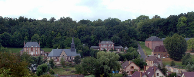 Nichée au pied d’un versant de la vallée de la Lepvrière et entourée de son cimetière, l’église Saint-Aubin placée sous le patronage du prieur de Saint-Laurent-en-Lyons, est un édifice d’ origine romane en forme de croix latine, orienté nord-ouest-sud-est en raison de la configuration du terrain.