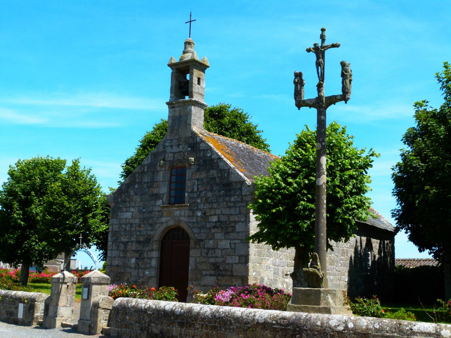 Le calvaire, daté de la fin du 16e siècle, époque d’active production de ce type de monument en Bretagne, et particulièrement dans le Léon lors de l’épiscopat de Roland de Neufville (1562-1613), présente un intérêt indéniable pour sa statuaire, restituée dans sa quasi intégralité par la restauration respectueuse de 1895. La restauration en 1895 du calvaire, est attribuée au sculpteur morlaisien Larhantec.