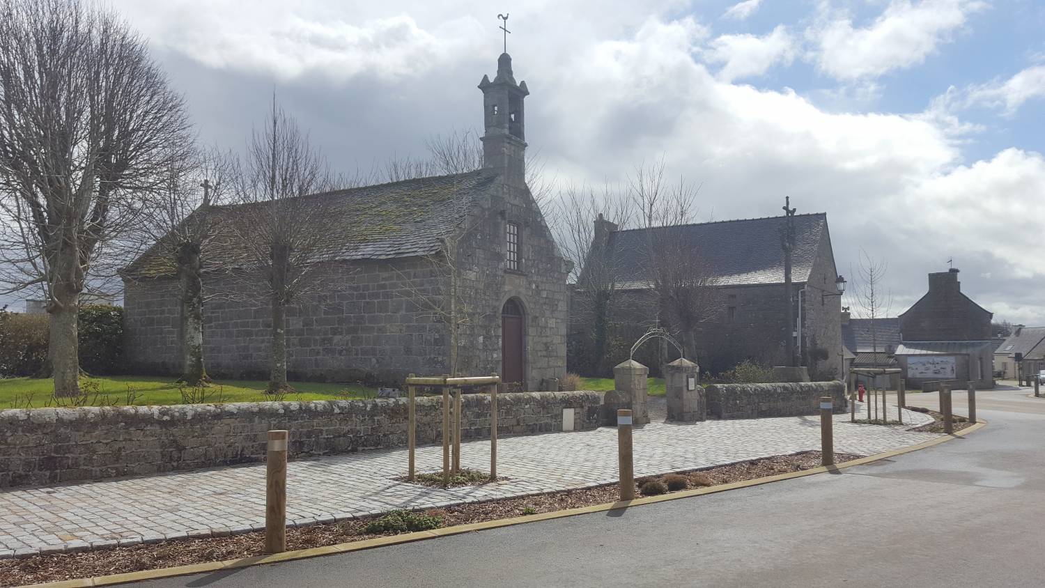 Elle se situait au cœur d’un ensemble comprenant le cimetière, actuellement recouvert d’herbe, le calvaire et la maison du chapelain qui ont été conservés.