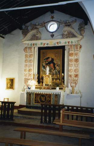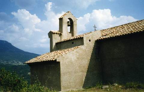 qui se répandit en Provence dès le XVIe s. C’est une construction fore modeste, simple rectangle couvert directement par la toiture et précédé d’ un porche. La façade est dotée d’une jolie porte de style classique surmontée d ‘une niche. Le porche, assez profond , ouvre vers l’ouest par une grande baie en plein cintre. En 1734 , un petit ermitage fut annexé à l’édifice. Le clocheton -arcade, accolé au pignon oriental de la chapelle, possédait une cloche du XVIIe s. qui fut transportée dans le clocher de l’ église paroissiale reconstruite de 1733 à 1736. Ce petit monument est un bon échantillon de la typologie habituelle des sanctuaires élevés à la périphérie des villages par des fidèles groupés en diverses confréries en dehors du cadre de l’ église paroissiale mais intimement mêlés à la vie communale. La Sauvegarde de l’Art Français, qui a déjà subventionné le sauvetage de la chapelle Notre-Dame de Liesse a versé, en 1993, une somme de 10 000 F pour aider à la remise en état de la chapelle Notre-Dame du Rosaire. On y célèbre encore chaque année la fête le jour de cette dévotion.