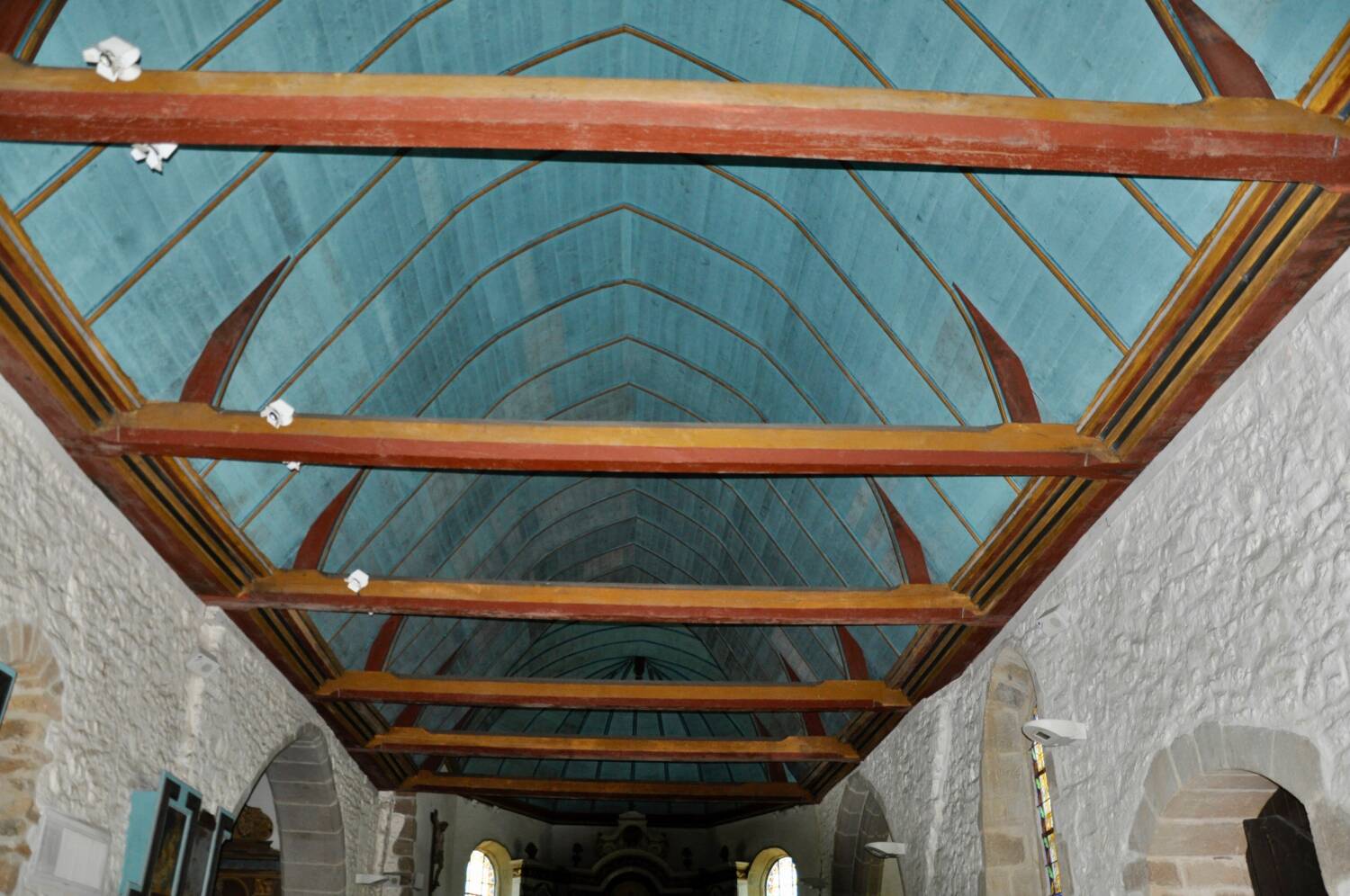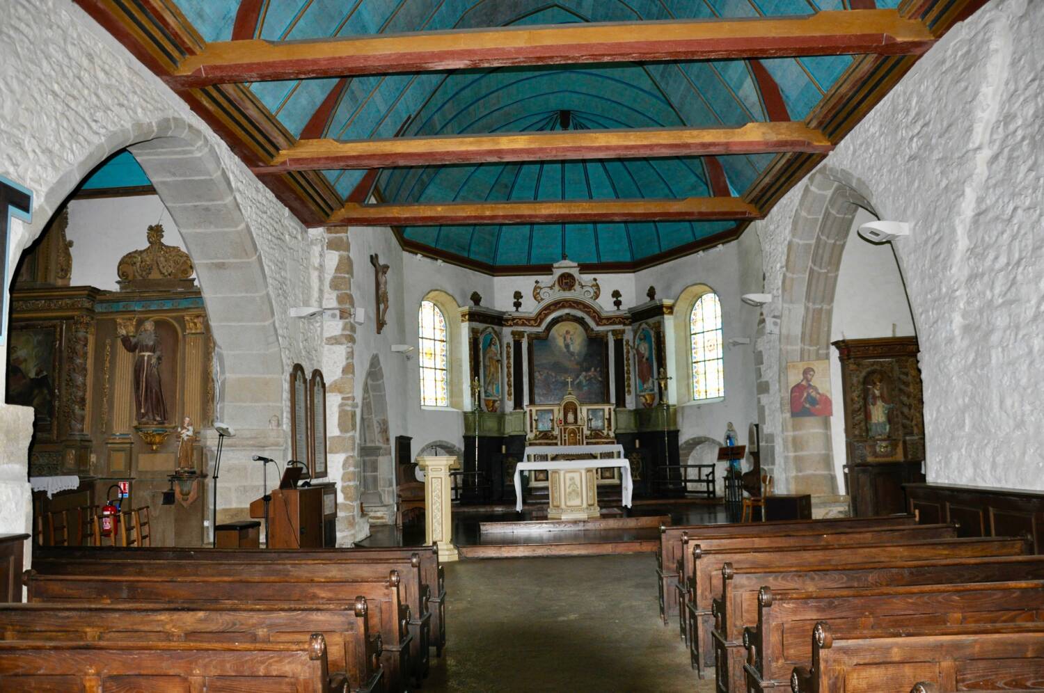 À l’intérieur, l’église conserve un exceptionnel retable baroque à colonnes torses, orné d’éléments sculptés et de statues de saints, partiellement restauré au fil du temps. Deux retables latéraux, de la même époque, complètent l’ensemble. Le mobilier comprend également un Christ en croix en bois du XVIIIe siècle, inscrit au titre des Monuments historiques pour la qualité de son modelé et de sa draperie, un lutrin à double aigle, ainsi qu’une statue en granit de saint Lunaire, vénérée localement.