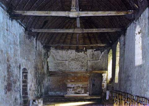 Robert Triger indique qu’à la fin du XIXes. la chapelle possédait encore des éléments de son mobilier dont un croquis, exécuté sur ses indications, montre l’emplacement. Au revers du mur-pignon ouest s’élevait une tribune. Une clôture en bois, surmontée d’une Crucifixion, séparait la nef du chœur. Un autel portant trois panneaux peints lui était adossé : ils représentaient sainte Agathe, sainte Emérence, sainte Julie. Une autre clôture séparait le chœur de l’abside, elle ménageait un passage du côté droit. Sur l’autel majeur était placé un retable où figuraient saint Jean-Baptiste et la Vierge et un ermite. Saint Jean était le patron des Hospitaliers. La partie supérieure du retable se retournait en une sorte de dais en quart de cercle, comme on en trouve parfois au-dessus de bancs d’œuvre seigneuriaux, il était surmonté d’une frise sculptée avec dragons, chimères, feuillages, de style flamboyant.