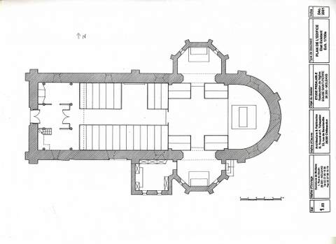 L’église se compose d’une nef unique, prolongée par un chœur d’une travée, et d’une abside hémi-circulaire. Deux chapelles à pans coupés, formant un faux transept, ont été ajoutées lors de cette mise au goût du jour. L’église est dominée par un clocher de charpente qui s’élève au-dessus de la première travée de la nef. Le pignon de la façade occidentale a été reconstruit au siècle dernier, un porche de bois extérieur supprimé. L’axe médian de la façade actuelle est ponctué par une porte en plein cintre surmontée d’une archivolte, une ouverture circulaire au premier niveau et une petite fenêtre percée dans la partie haute du pignon. Du côté nord subsiste dans la partie haute du mur un cordon en fort relief formant corniche, reposant sur des modillons simples. Aux ouvertures anciennes, étroites et inégales, ont été ajoutées des ouvertures supplémentaires au siècle dernier, dans la nef ainsi que dans le chœur et l’abside, pour donner plus de jour à l’ensemble.