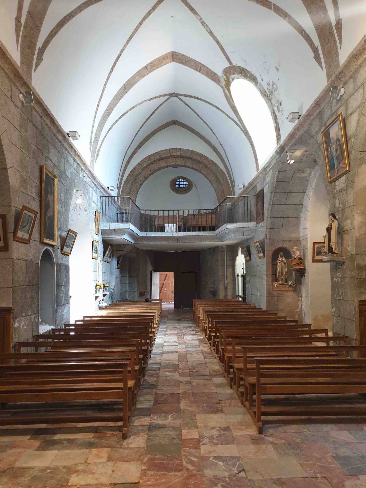 Les deux chapelles en berceau brisé continu qui s’ouvrent sur la nef ont été rajoutées lors des remaniements puis dans la première moitié du XVIII°.