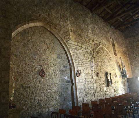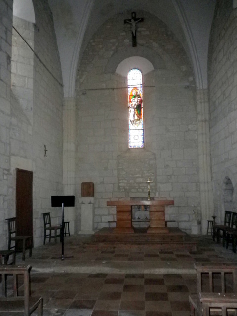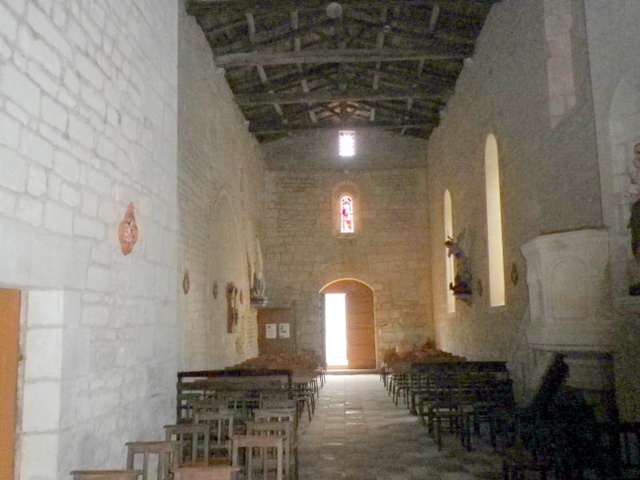 L’église Saint-Séverin de Mons (26 m de long), se composait d’une nef romane de trois travées du XIIe s., dépourvue de supports intérieurs et couverte d’un lambris, suivie d’une travée sous clocher et d’une abside romane, dont on perçoit à peine la naissance du côté sud. Elle a été remplacée par un chœur rectangulaire dont les faisceaux de colonnettes d’angle à chapiteaux moulurés sont caractéristiques du XIVe siècle. La voûte sur croisée d’ogives, dont les restes de formerets correspondaient à des voûtains assez bombés, a disparu, remplacée par une couverture de fortune. De même, la travée romane sous le clocher, couverte probablement d’une coupole sur pendentifs, a été voûtée d’un berceau à peine brisé, reposant sur des murs massifs. l’est, subsistent de l’ancienne voûte deux colonnes engagées du XIIe s., coiffées de beaux chapiteaux ornés de rinceaux, de quadrupèdes et d’oiseaux. Le gouttereau sud, roman, est accolé à des habitations : on peut voir, à l’intérieur, l’appareillage homogène, avec trois fenêtres en plein cintre ébrasées régulièrement espacées. Le mur nord a été remonté sans style, avec deux longues baies modernes. Dans la partie romane de l’abside au midi, qui n’excède guère un mètre de large, on peut voir un guerrier assis, avec une épée et une lance : il s’agit plutôt d’un graffito que d’une sculpture. Crozet signale le décor zoomorphe d’une métope romane archaïsante qu’il attribue, par erreur, à Mons mais qui se situe, en réemploi, à Prignac.