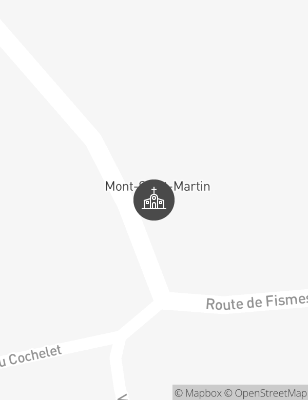 On possède très peu de renseignements sur la modeste église de Mont-Saint-Martin, édifice aujourd’hui très mutilé dont il ne reste que le chevet. Ce chevet pourrait remonter au XVe s. L’abbé Ledouble, qui écrivait vers 1880, notait déjà que l’église était « à peu près détruite », mais qu’elle allait faire l’objet de travaux. Quelques photographies prises pendant la Première Guerre mondiale attestent la violence des combats près du village, mais le monument, très endommagé par les bombardements, présentait déjà avant le conflit son aspect actuel.