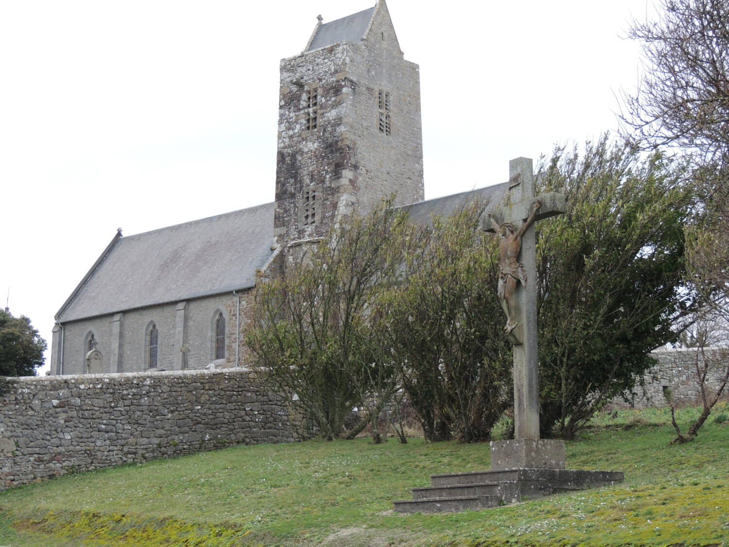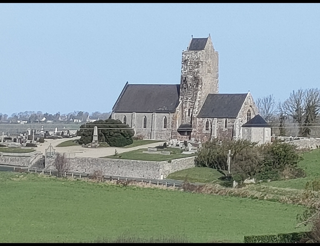 Implantée sur une ancienne nécropole mérovingienne, comme en témoignent la découverte de sarcophages des VIᵉ-VIIᵉ siècles et d’une fibule, l’église Saint-Georges trouve ses origines dans un premier lieu de culte antérieur au XIᵉ siècle, bien que son existence soit attestée avec certitude à partir de cette période. D’abord chapelle liée à un site fortifié, elle devient l’église paroissiale du village et s’inscrit dans un ensemble d’églises romanes fortifiées du littoral du Cotentin. Entre le XIIIᵉ et le XVe siècle, dans un contexte marqué par la guerre de Cent Ans et les incursions anglaises, la tour-clocher est conçue ou remaniée pour remplir un rôle défensif, servant probablement de tour de guet après la destruction de la forteresse voisine. L’édifice connaît ensuite de nombreuses restaurations, des incendies en 1895 et 1944, puis d’importants travaux de reconstruction après la Seconde Guerre mondiale.