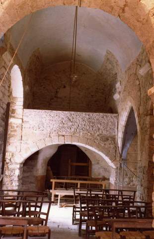 Chapelle Saint-Michel de Paders assurant le service paroissial de la commune. Dossier transmis par Mme Cahen-Salvador, président de la F.N.A.S.S.E.M., et par Mme Cabanes, président du comité départemental de l’Hérault. L’édifice est d’un intérêt tout à fait exceptionnel en raison de sa date reculée. M. l’abbé Giry, qui est aujourd’hui l’un de nos plus savants archéologues, a bien voulu nous en envoyer la description suivante : « La chapelle est faite d’un sanctuaire très étroit et d’une petite nef, qui ont fait l’objet en 1980-1981 de la part de M. Gabriel Gondard, d’importants travaux de décapage, effectués à titre gracieux. Ce travail a mérité un prix des Vieilles maisons françaises en 1981. Le chœur, de plan irrégulier a, dans œuvre, 2,07 m de large et 4,20 m de long. Sur les côtés, deux piliers de 0,45 m de profondeur, sont plaqués sur chacun des murs sud et nord, pour soutenir des arcatures longitudinales en plein cintre. On voit que le chœur primitif était plus large et avait 3 m. Au sud, s’ouvre une petite fenêtre à double ébrasement et à l’est un oculus de style gothique, qui a dû remplacer la fenêtre axiale primitive. La liaison du chœur avec la nef se fait par deux piliers qui laissent entre eux un passage de 2,20 m. La nef a 7,10 m de long et 3,10 m de large dans œuvre. Elle possède une voûte plein cintre, qui repose sur des arcatures longitudinales, portées elles-mêmes par des piliers de 0,40 m de profondeur. Avant l’adjonction tardive de ces piliers ; la nef avait 3,90 m de large. On aperçoit dans les murs les traces d’anciens arcs diaphragmes, qui devaient porter la charpente primitive. Au sud, la porte, en tiers-point, est gothique et est précédée d’un porche moderne. Au nord, s’ouvre une chapelle voûtée d’arêtes. Dans la travée de fond se trouve une tribune, portée par deux puissants arcs diagonaux. La clé est ornée de trois cercles concentriques autour d’une rosace à six pétales. Au-delà de cette travée s’ouvre une petite pièce qui rappelle celle qui prolonge la nef de Villenouvette-la-Requi à Maraussan. C’est peut-être là que se dressait la cuve baptismale tronconique romane, qui sert encore. Cette église a été construite en deux campagnes. Dans la première, sans doute à l’époque wisigothique, on construit un petit édifice non voûté, à chevet carré, dont l’arc triomphal était porté par deux piliers saillants. Dans la deuxième, on ajoute les voûtes du chœur et de la nef, qui prennent appui sur des arcs longitudinaux. Ceux-ci sont faits de claveaux étroits et très réguliers, où les effets de polychromie sont très recherchés. Cette polychromie est obtenue avec des voussoirs noirs, ocres et blancs, selon qu’ils sont faits de basalte, de calcaire ou de grès. On a su composer leur alternance avec un grand souci de décoration. Tout cela nous paraît caractéristique de l’époque carolingienne. Nous ne connaissons pas dans la région d’église qui offre un ensemble d’un pareil intérêt. La mise en valeur de l’édifice devrait se compléter par un léger sablage des murs et un rejointoiement des pierres. »