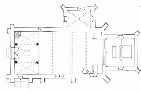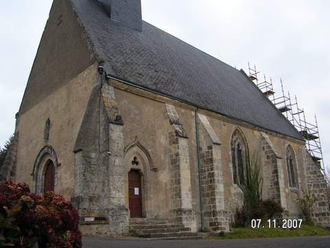 À vaisseau unique, elle se termine par un chœur à chevet plat de moindres volume et dimensions dont les maçonneries, de par leur facture, laissent à penser qu’il a été fortement repris au XIXe siècle. Une petite chapelle seigneuriale a été édifiée au XVIe s. sur le flanc nord. Un modeste clocher d’ardoises couronne la première travée de la nef. À la porte au profil brisé du pignon occidental a été ajouté, vraisemblablement au siècle dernier, un autre accès à la nef côté sud.