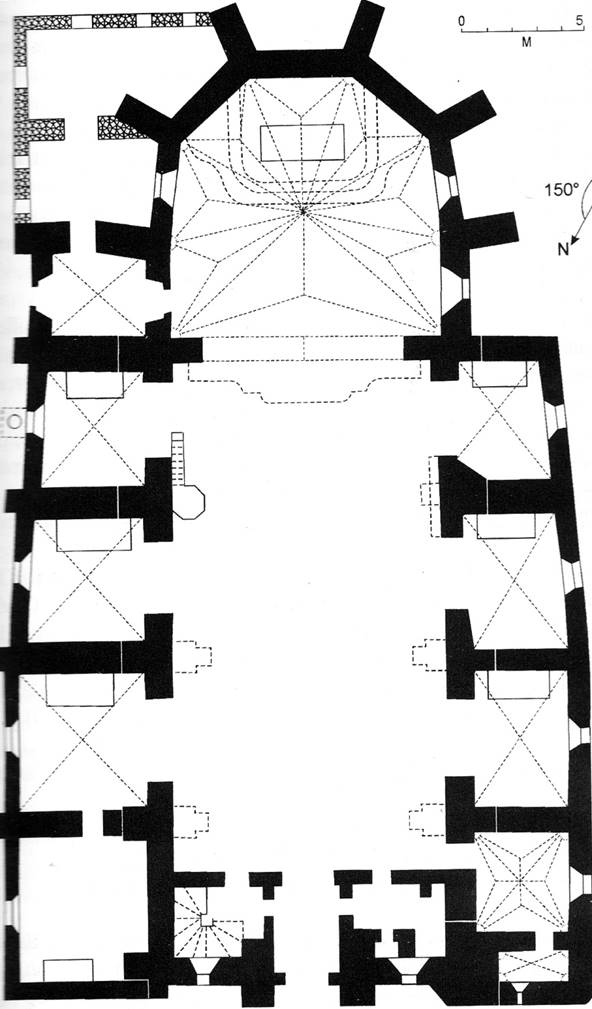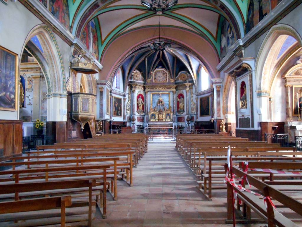 L’église est composée d’une nef de 4 travées avec une travée de choeur et un chevet à 5 pans coupés. Deux bas côtés encadrent la nef comportant chacun trois chapelles. Un clocher mur à 6 arcades sur deux niveaux, surmonte la première travée. Il est encadré de deux tourelles d’angle. Une sacristie est adossée au mur nord du choeur. Les murs sont en briques enduites et les couvertures en tuiles creuses. Les voûtes de la nef sont en plâtre sur lattis.