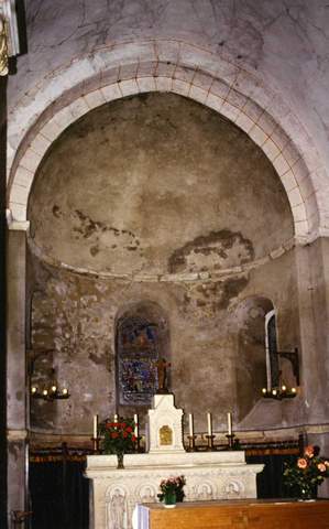tous les deux voûtés en berceau brisé, et l’abside en cul-de-four ont été ajoutés au XIIe s. De beaux chapiteaux terminent les colonnes engagées à l’entrée du chœur. Au XIIIe s., une travée occidentale et des bas-côtés ont complété la nef. Sur la seconde travée, une voûte sur croisée d’ogives destinée à porter le clocher a été établie après coup, sans doute au XIIIe s. elle aussi. A l’extérieur, l’église a conservé au sud une vaste galerie couverte d’un appentis dont la charpente apparente repose sur des dés de pierre. Cette disposition, fréquente autrefois dans les églises du Berry, a été respectée alors que la plupart de ces adjonctions sont maintenant détruites. On appelle cette galerie la « guenillère » parce que, jadis, les malheureux s’y mettaient à l’abri. Le mobilier conservé comporte deux consoles en pierre sculptée du XIIe s., classées Monuments historiques, ainsi qu’une statue de la Vierge à l’Enfant du XVIIe s. Pour des travaux de maçonnerie, de couverture, de drainage, 38 000 F ont été accordés par la Sauvegarde de l’Art Français en 1990.
