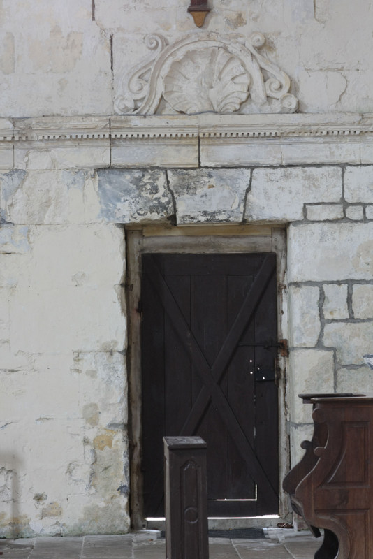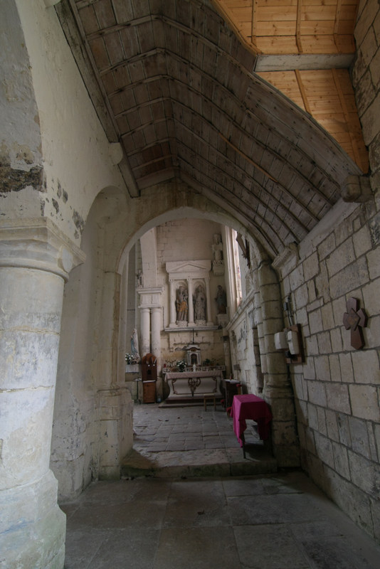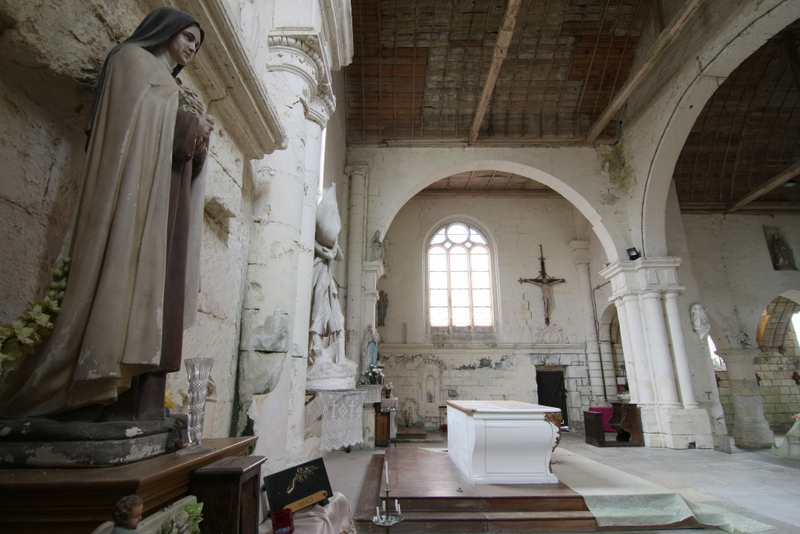 Un mur séparant le choeur en ruines du reste de l’édifice a été elevé au XXe siècle. Les élévations intérieures et extérieures sont soulignées par une litre funéraire, frappée des armes des seigneurs de Montiers.