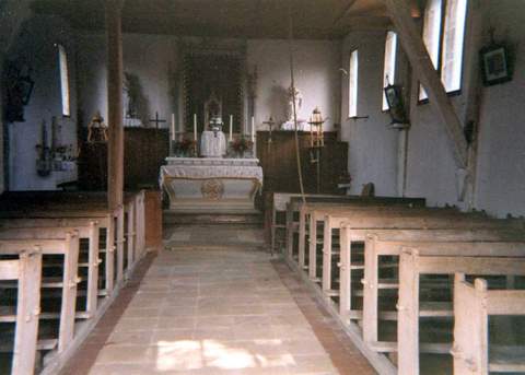 La nef unique est éclairée par des fenêtres rectangulaires ouvertes irrégulièrement dans les murs gouttereaux. Elle est prolongée à l’est par une sacristie. Le portail est simplement percé dans la façade ouest et ne présente aucun décor. L’édifice est couvert d’un toit à quatre pentes en tuiles plates et surmonté d’un clocher carré à flèche octogonale en charpente. L’église a conservé un mobilier du XVIème s., fonts baptismaux, statues de saint Jean-Baptiste et de saint Claude ainsi qu’une Vierge de Pitié.