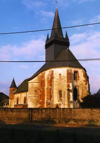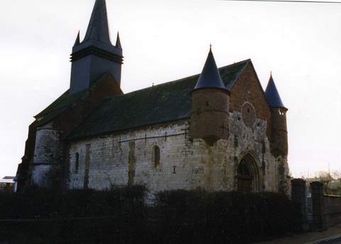 Au cœur d’une région très touchée par les guerres de l’époque moderne, l’église Saint-Nicolas de Morgny est un bel exemple d’église fortifiée. Alors que bon nombre d’édifices religieux ont été adaptés aux besoins de la défense par l’adjonction d’éléments défensifs ou la transformation de certaines parties, l’église Saint-Nicolas a intégré dès sa construction, au XVIe s., des éléments de défense. L’édifice se compose d’une nef et d’un chœur à cinq pans. Alors que l’ édifice primitif a été construit en pierres de taille, les adjonctions et restaurations – notamment au XIXe s. – ont toutes été réalisées en briques. Le chevet est la partie la plus originale de l’église. L’intérieur, éclairé par cinq fenêtres, est couvert d’une voûte sur croisée d’ogives dont la faible élévation tranche avec l’élancement du volume extérieur . Cette distorsion s’explique par la présence, au dessus du chœur, d’une salle, peut-être refuge, éclairée par de petites ouvertures rectangulaires gui font penser à des bouches à feu. On accédait à cette salle par les escaliers si tués dans les tourelles gui cantonnent le chœur. A l’intérieur de l’église, le chœur ouvre sur la nef, plus élevée, par une arcade brisée. La nef, couverte d’un faux plafond, est éclairée par cinq fenêtres dont trois, sur le mur sud, sont des aménagements postérieurs réalisés en brigue. A l’extérieur, les murs de la nef portent la trace de contreforts gui ont été arrachés à une date indéterminée. La façade possède encore l’essentiel de ses dispositions primitives, qui se distinguent par l’emploi de la pierre de taille. Le portail gothique, encadré de pinacles ornés de choux frisés, était surmonté d’un oculus aujourd’hui obstrué, Une échauguette en brigue, comme le pignon, surmonte chaque angle de la façade. La couverture de ces tourelles a fait l’objet en 1994 d’une restauration, pour laquelle la Sauvegarde de l’Art Français a accordé 30 000 F la même année.