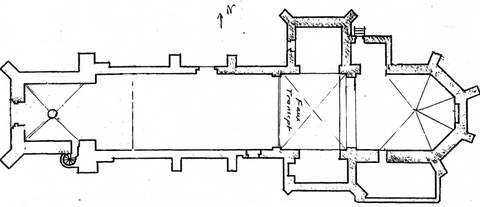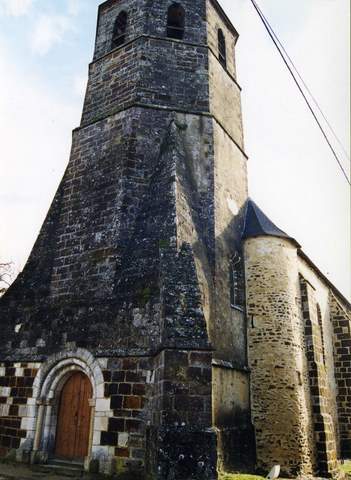 La tour occidentale, ouvrage solide, soigné et même savant, paracheva l’édifice (début XIVe s. ?). Sur une base carrée, articulée sur les murs gouttereaux de la nef par des contreforts renforcés, son rez-de-chaussée ouvre directement et de toute sa hauteur sur le volume intérieur, sans qu’il y ait trace d’un mur de façade. Il est couvert d’une forte voûte sur croisée d’ogives, percée en son centre d’un grand oculus destiné à la sonnerie des cloches. En porte à faux sur les reins de la voûte s’élèvent sur trois niveaux, chacun en léger retrait, les pans d’un clocher octogone. Le passage du carré à l’octogone s’opère à l’extérieur par l’intermédiaire de pyramides engagées, hautes et pointues, articulées avec le sommet des contreforts d’angle du rez-de-chaussée. Celui-ci s’ouvre à l’ouest par une porte, malheureusement refaite vers 1870 en style pseudo-roman. Telle se présente cette pièce d’architecture fort originale.