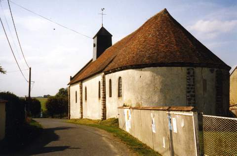 Située à 5 km au nord-est de la Ferté-Vidame, l’église Saint-Denis de Morvilliers se dresse au plein centre du bourg. La cure était à la collation de l’abbé de Saint-Père de Chartres, dont les moines possédaient l’église dès le commencement du XIIe siècle. Deux chartes, datées de 1126 et 1127, l’attestent. Cet édifice comprend une nef unique terminée par un chevet en hémicycle. Un clocher de charpente couronne la partie occidentale du toit depuis le XVIIIe siècle. Le portail ouest par lequel on accède à cet édifice est en grison malheureusement cimenté avec un décor de fausses pierres. Le mur sud est percé de cinq baies étroites, vraisemblablement du XIIe siècle. Quatre fenêtre ont été aménagées au XVe s. sur la façade nord. Une cinquième, aujourd’hui bouchée, a été percée dans l’abside à la même époque. À l’intérieur, malgré des remaniements, l’église conserve une charpente apparente à chevrons formant ferme d’époque médiévale. Curieusement indépendante de la structure de l’église, elle repose sur deux files de poteaux le long des murs gouttereaux. La voûte est lambrissée. La présence de fresques a pu être décelée sous les enduits du mur nord.
