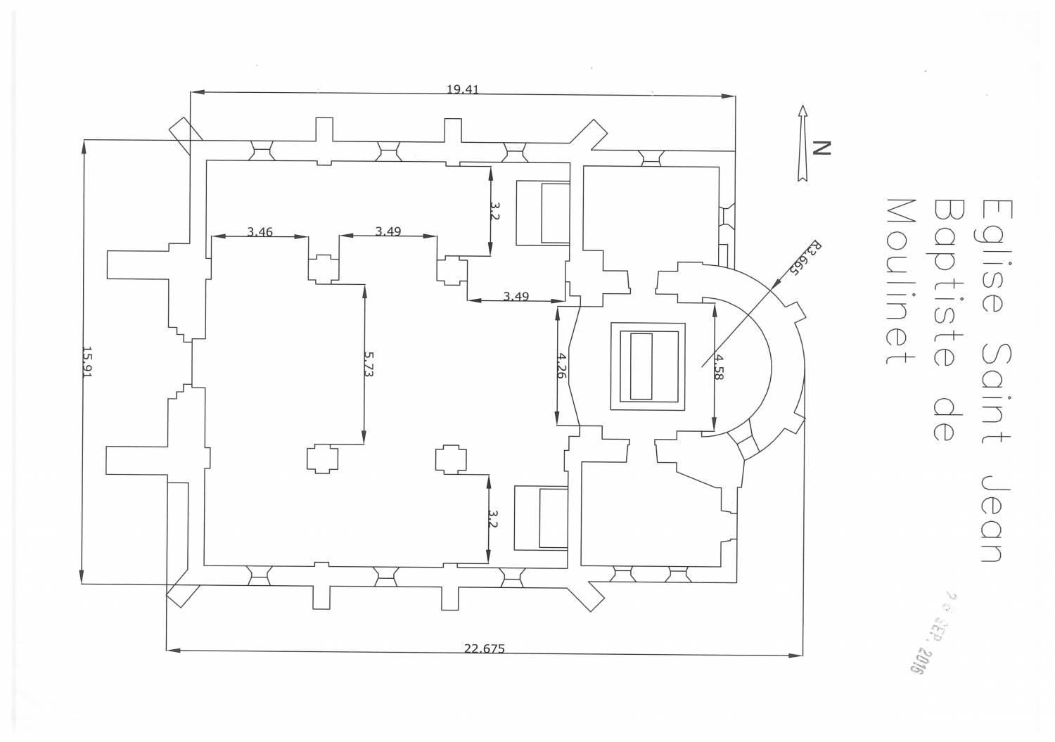 Cette église présente une nef de trois travées à trois vaisseaux suivie d’un chœur composé d’une travée droite et d’une abside semi-circulaire.