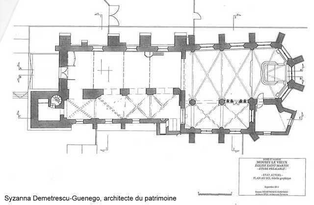 L’église Saint-Martin est composée d’une nef avec bas-côté de quatre travées, du côté Sud, suivie d’un choeur de trois travées avec chevet à trois pans coupés. Le bas-côté Sud longe aussi le choeur sur deux travées, prolongé par une sacristie.
