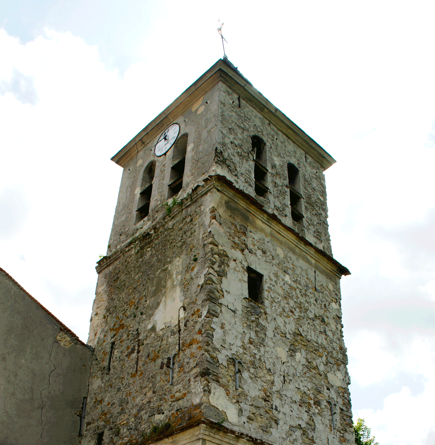 Le clocher est une tour de plan carré, située le long de la première travée du bas-côté Sud.