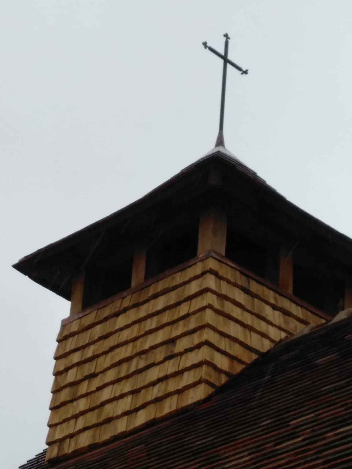 Sont représentés un Christ en croix, une Vierge couronnée ainsi que des petites têtes d’anges ailés et la mention « IB Goussel FL 1784 ».